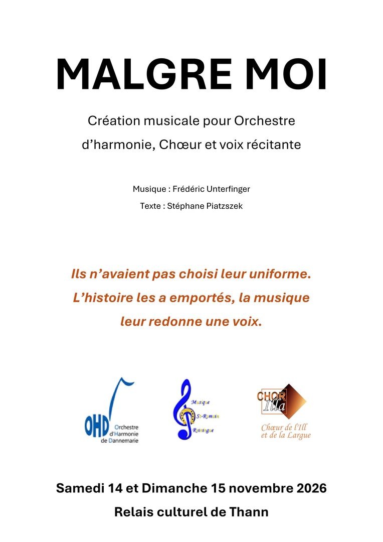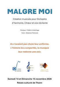 14 et 15 novembre 2026 : concerts orchestre, chœur et voix récitante